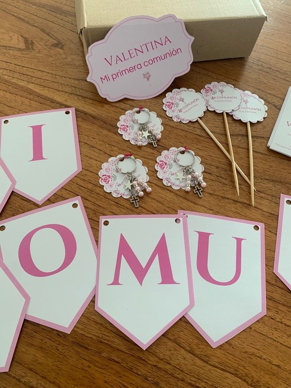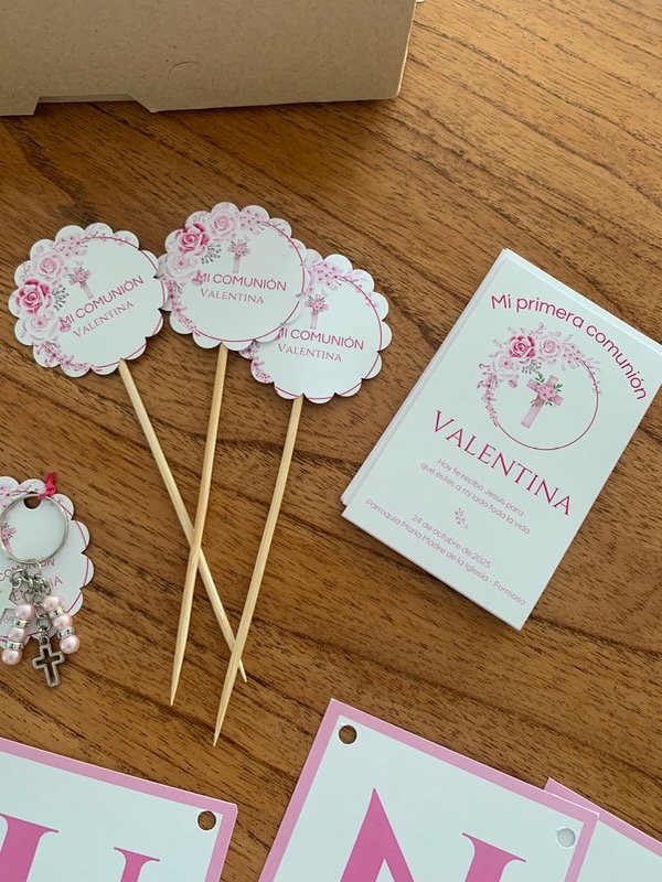 Aclaración: se puede agregar más souvenirs - estampitas - deco para mesa - topper de torta (con costo adicional)